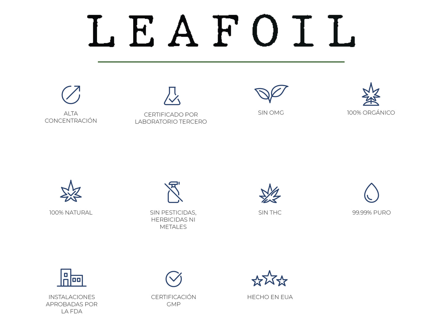 En LEAFOIL formulamos productos con CBD utilizando estándares de calidad farmacéutica. Todos nuestros productos se derivan de cáñamo cultivado en EUA y son procesados en un entorno altamente controlado para garantizar pureza y consistencia, siguiendo los estándares GMP, ISO, USDA, FDA y certificando cada producto para mantener una calidad impecable.